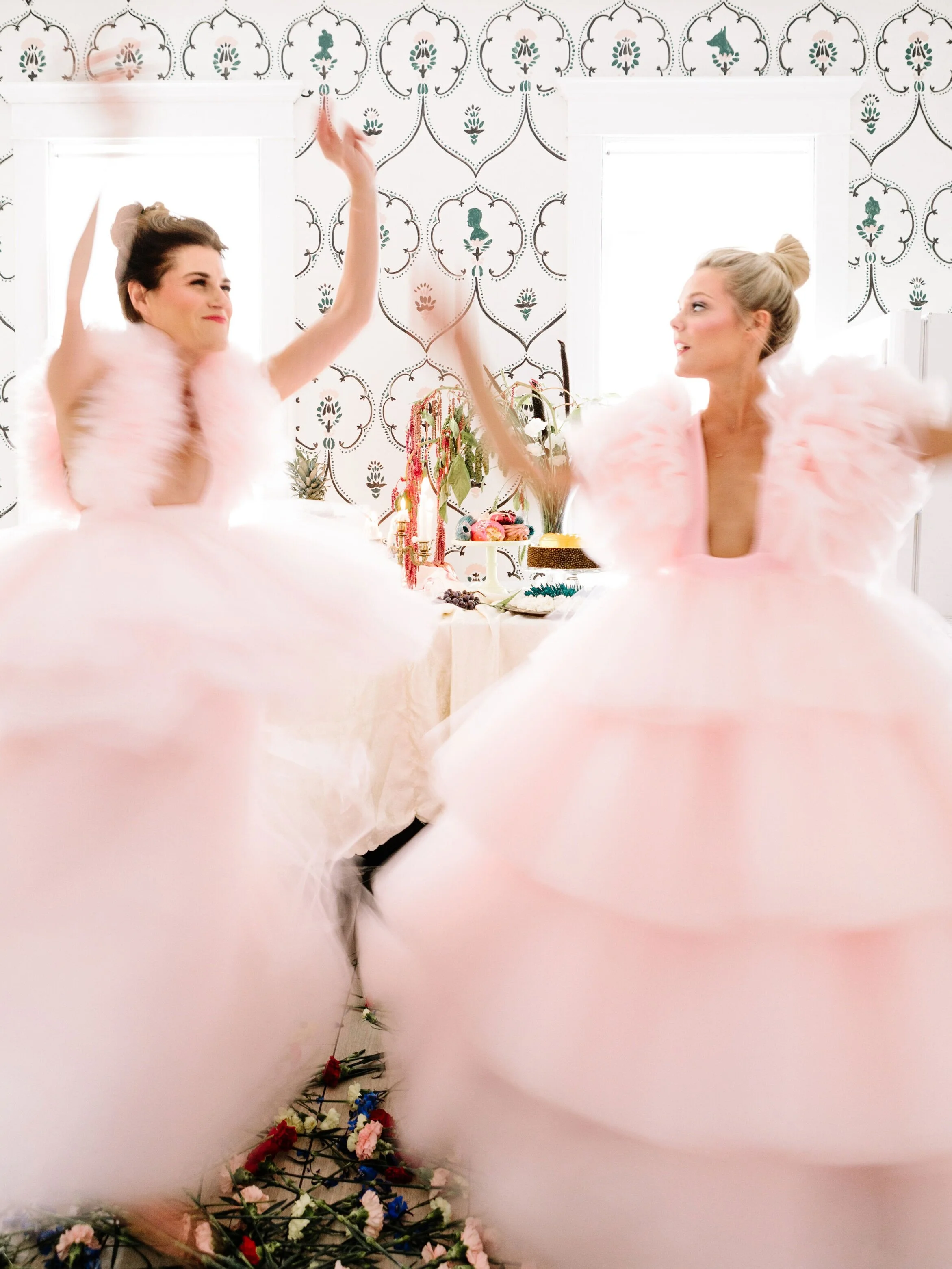 Welcome to The Elliot House, home of our first photographer, Colleen Eversman of 2nd Truth Photography. Colleen has one of the specialist places in our hearts because she has been with us since day one. She was the first person to ever see a She She in person and she not only made our first shoot look legitimate but she made us believe that our fun, little craft project was worth continuing. Though we owe her so much more, we made this Victorian pattern depicting her family as a "thank you" for everything she has given to us over the years. The original character of her home is incredible so we took those delicate details and turned them into a design and placed the silhouettes of Colleen, her partner James and their sweet dog, Ellie into the pattern to leave a forever stamp on their home before they made their transition to San Francisco.